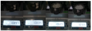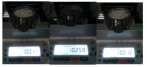 - 將防風(fēng)盤、支架、樣品盤一一裝好,接通電源,按下開(kāi)機(jī)鍵,顯示屏進(jìn)入開(kāi)機(jī)界面,首先按去皮鍵減去樣品盤重量,后將100g砝碼放入托盤進(jìn)行校準(zhǔn);