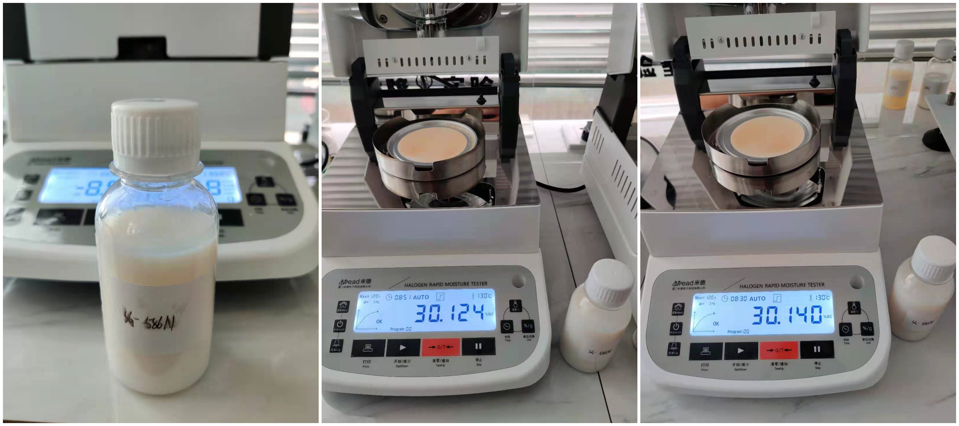 測試儀器:米德QL-720D(稱重精度0.001g,水分解析0.001%)