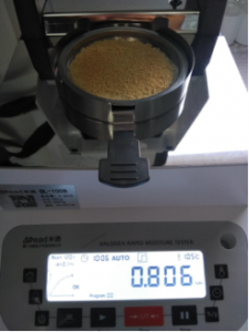 第一次測量,測試時(shí)間10分06秒,溫度105℃,水分0.806%