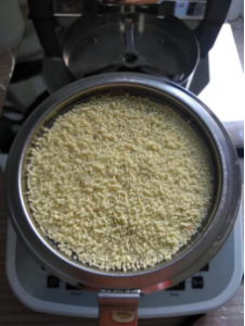 第四步,將取樣的雞精平鋪均勻,這樣做有利于測量,樣品能均勻加熱。