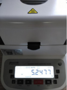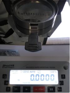 第二次測量,測試時(shí)間9分57秒,溫度105℃,水分0.814%