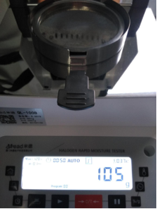 第二步設(shè)定下溫度。就設(shè)定105℃,溫度太高會把雞精烤化。溫度太低會影響雞精的測量時(shí)間。