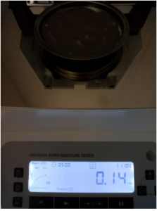 第三次,同樣克重方法定時(shí)測試5分鐘后檢測結(jié)束,檢測數(shù)據(jù)顯示0.14%;