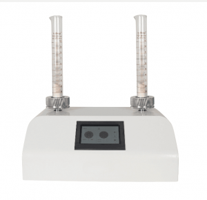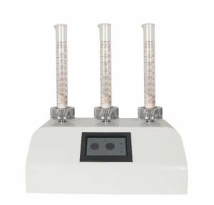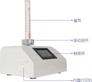 將定量的粉末置于量筒中,在保持顆粒原始形態(tài)下,通過振動裝置均勻往復(fù)的上下直線運(yùn)動,使顆粒間隙趨于一極限值,直到粉末的體積不再減小為止。粉末的質(zhì)量除以振實后的體積,得到的就是樣品的振實密度。